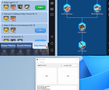 WoS-Trainer works on any Android emulator for Windows and Mac, and can be resized to any size and can run even while the game is minimized